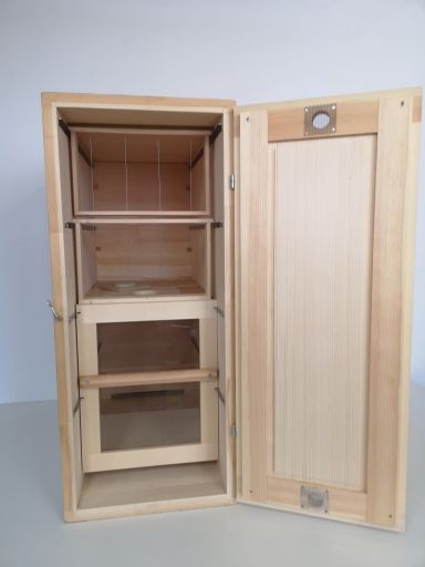 Equipé d'une fenêtre pour l'incubation et de deux fenêtres pour la chambre de miel, de planches de recouvrement et d'une porte avec remplissage mortaisé.